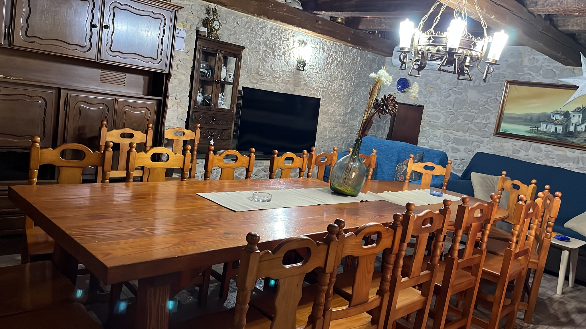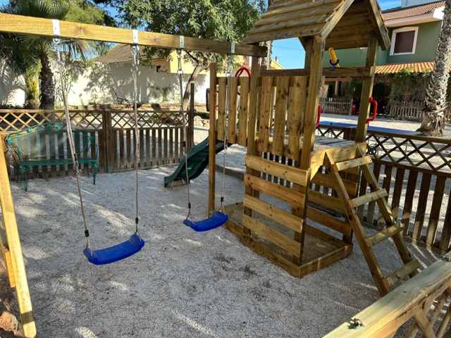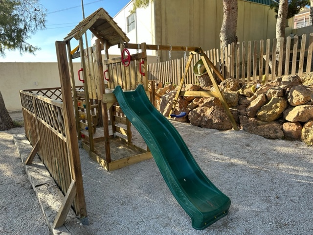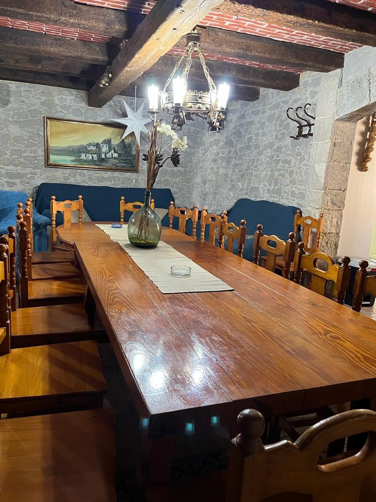 Es una gran casa privada frente al complejo rural, que tiene solo para esa casa, piscina de verano, barbacoa, ping-pong, futbolín, parque infantil y un gran jardín.